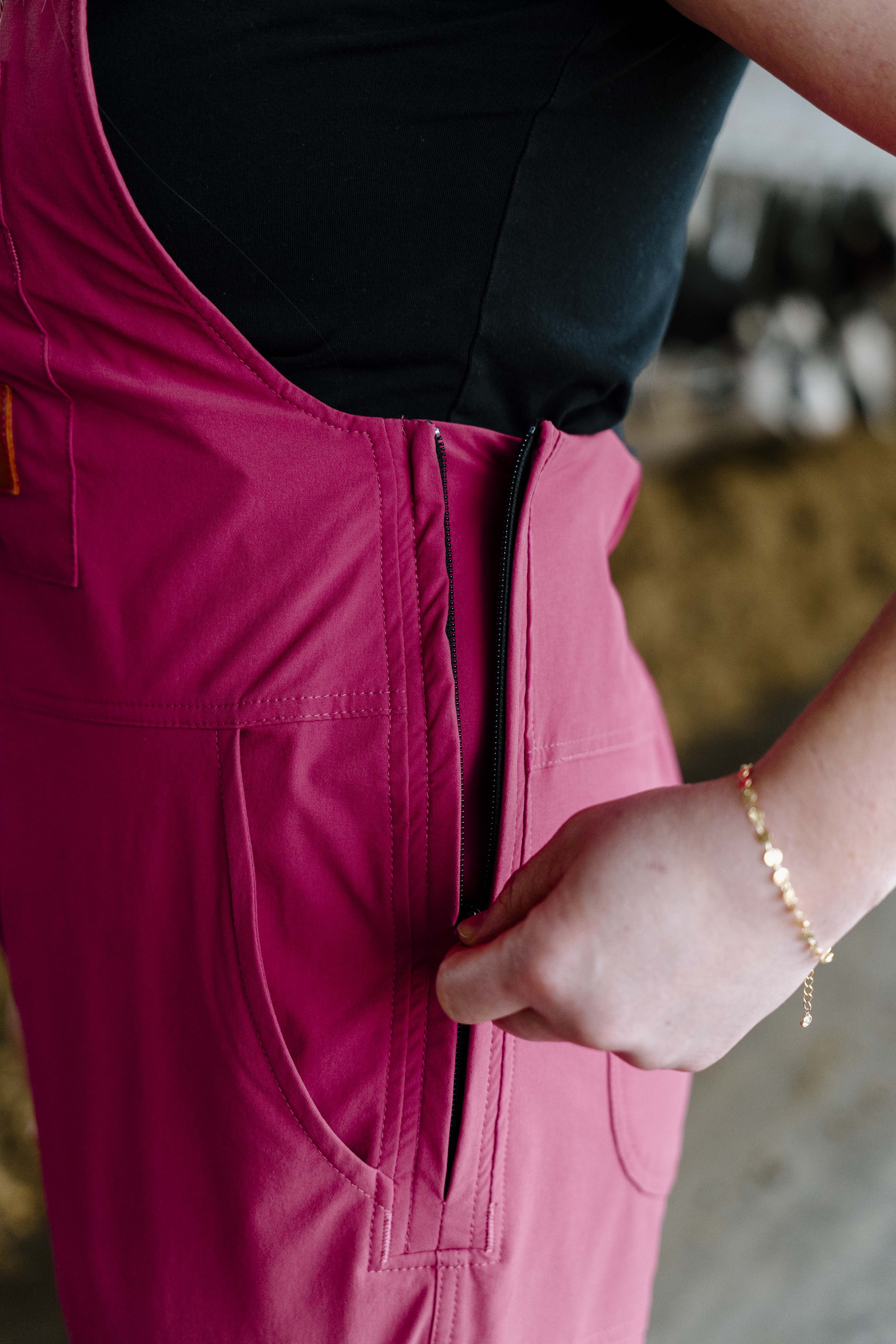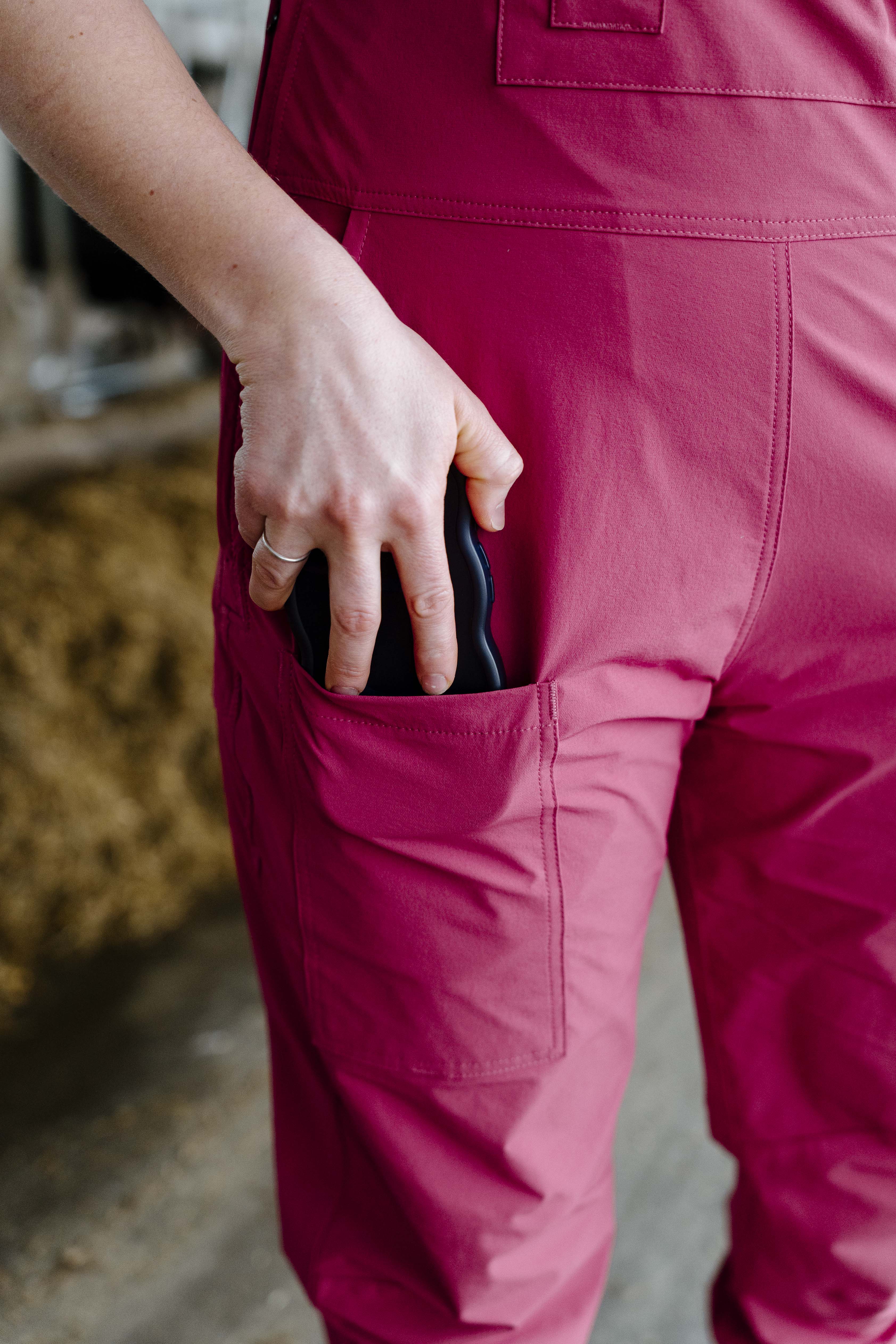 We love overalls too much not to wear them year round so we revolutionized the workwear game to bring to you an overall that is lightweight, stretchy, quick to dry and offers light water resistance against splashes and fluids. This is a lighter-duty fabric than our classic canvas, ideal for staying clean in the pig barn, pressure washing, vet work, milking, scouting fields, or grooming (yes, they are hair resistant!). Features: elastic straps for maximum flexibility, buckles that won't come undone, thigh cell phone pocket, two bum pockets, knife pocket, and seams in all the right places.
