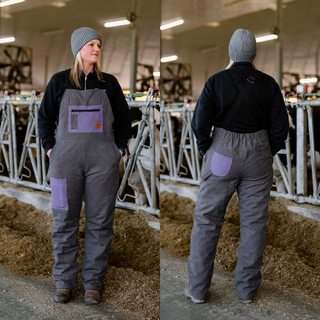 Flattering, durable, cozy and warm. Fitted to highlight your waist and allow room for your hips, with seams in all the right places. Featuring a 140 gram quilted polyester lining to keep you warm without too much bulkiness. Features: thigh cell phone pocket, two bum pockets, zippered chest pocket with syringe holders, pen pocket, front pockets, knife pocket, hammer loop, and reinforced crotch gusset. Heavy duty side zips for ease of putting on. Elastic straps for improved mobility and high grade buckles that won't come undone while working.