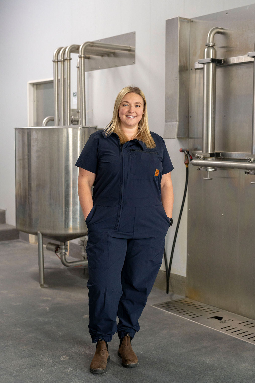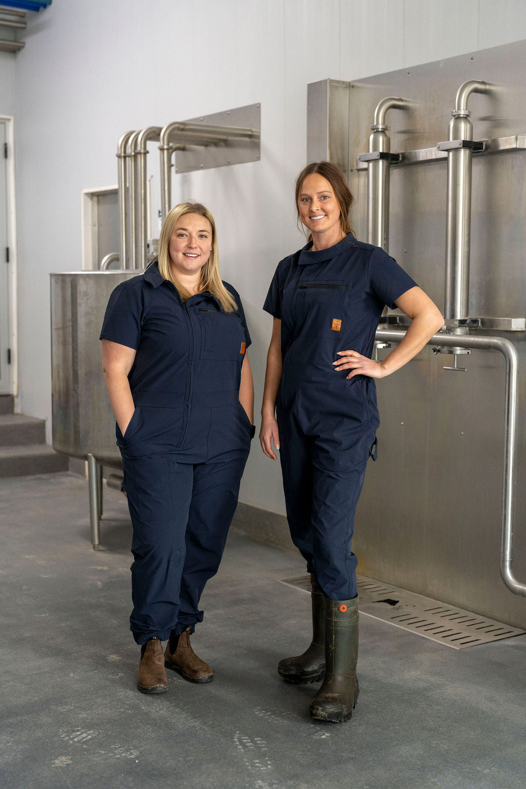 I wear these everyday as an AI Technician and have gotten so many compliments on them! They fit perfectly, are stretchy, and are cool in the warm summer months! Love that the zipper is slightly off centre and love the pocket placement. I was a bit worried about the collar getting in the way for my job but it doesn’t at all and adds a nice professional touch! Definitely worth the extra bit of money!