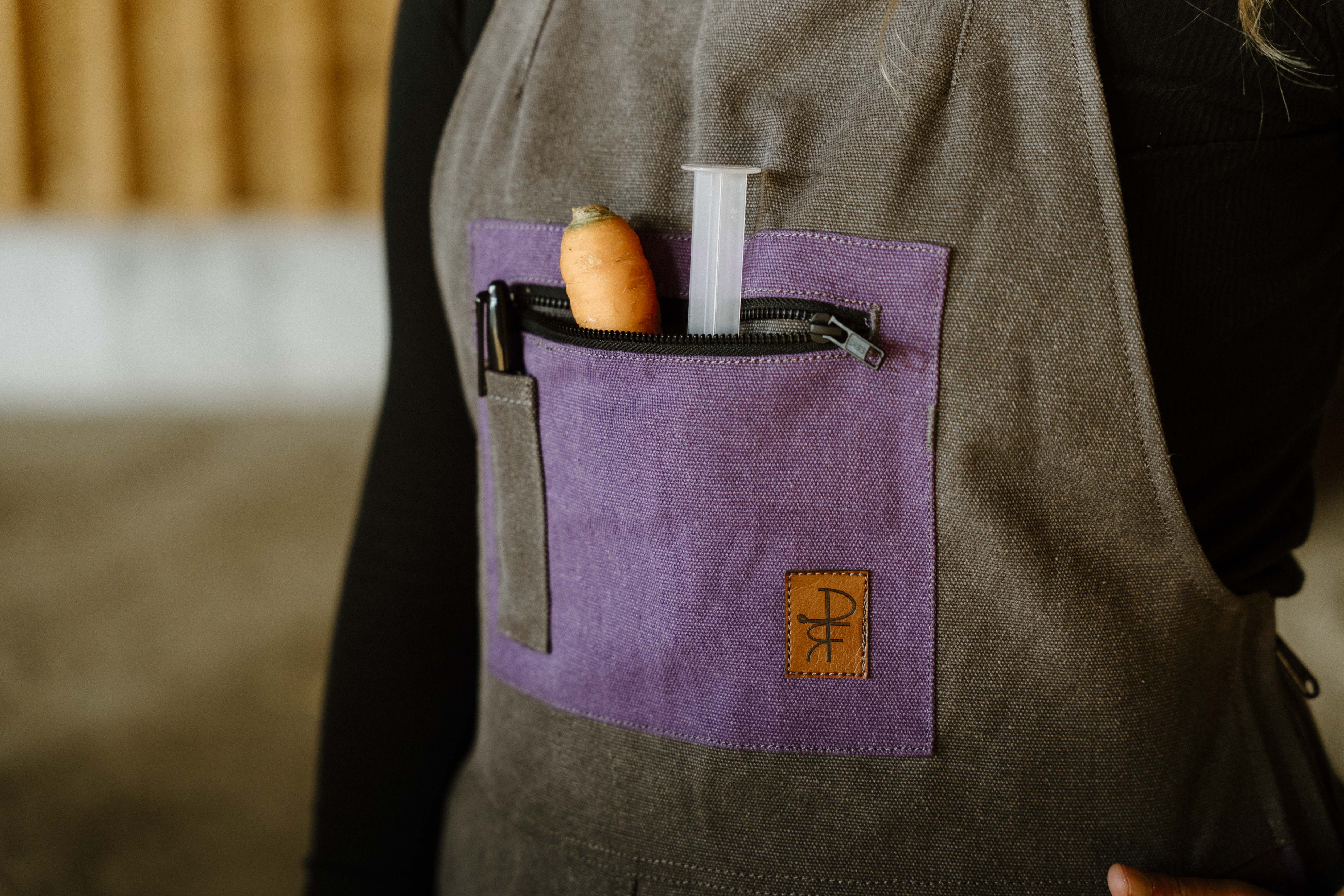 This one is for the purple lovers. Durable, flattering women's overalls that are fitted to highlight your waist and allow room for your hips, with seams in all the right places. Features: thigh cell phone pocket, two bum pockets, zippered chest pocket with syringe holders, pen pocket, front pockets, hammer loop, knife pocket and reinforced crotch gusset. Heavy duty side zips for ease of putting on. Elastic straps for improved mobility and high grade buckles that won't come undone while working.